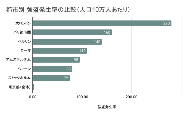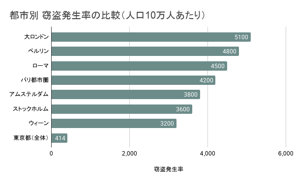 ヨーロッパでは治安が良い方と言われるウィーンですら、東京と比べると犯罪率は約8~25倍!